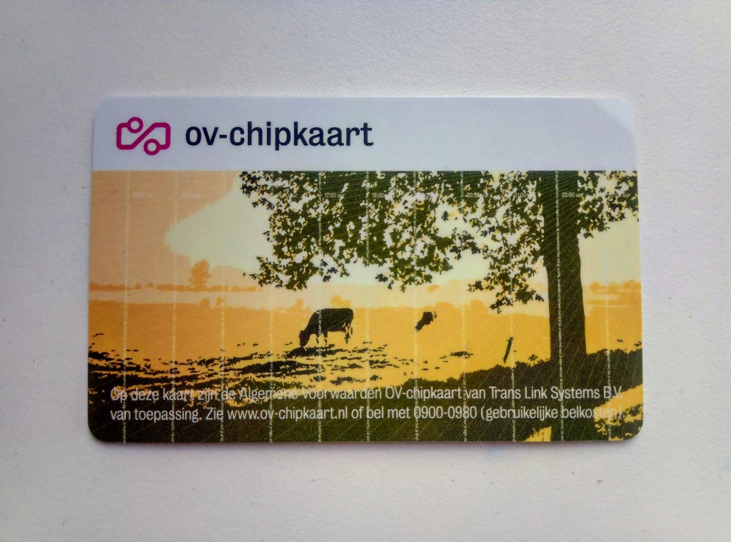 Едната страна на OV-chipkaart. От другата са снимката и името на притежателя.