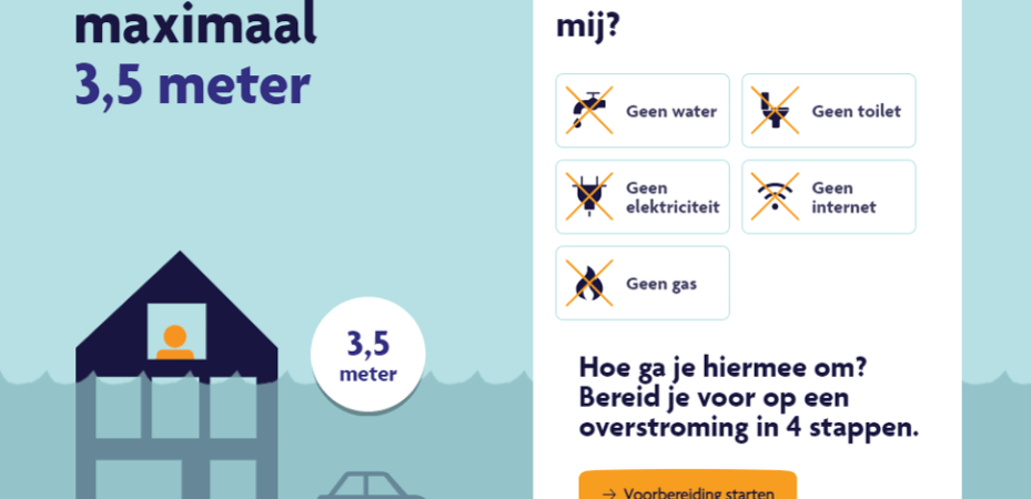 Натиснете Voorbereiding starten, за да видите какви стъпки можете да предприемете. В стъпка 1 можете да видите карта на Нидерландия и къде колко може да се наводни (колкото по-тъмносиньо става, толкова по-високо ще е нивото на водата).